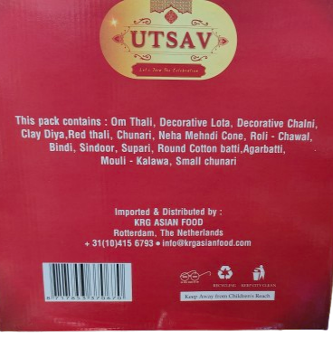 Om Thali, Decorative Lota, Decorative Chalni, Clay Diya, Red Thali, Chunari, Neha Mehandi Cone, Roli - Chawal, Bindi, Sindoor, Supari, Round Cotton Batti, Agarbatti, Mouli - Kalawa, Small Chunari.